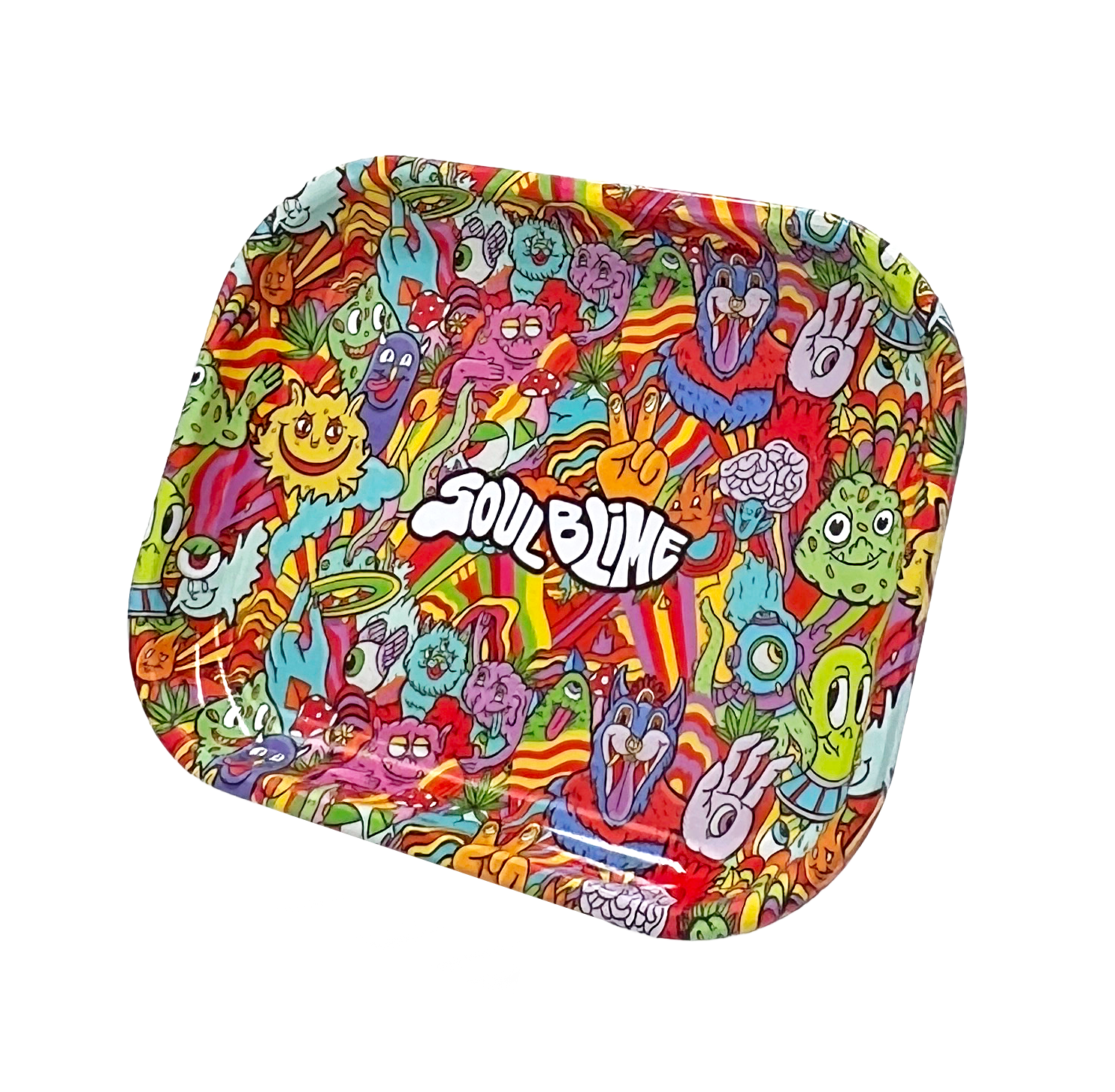Cada bandeja presenta ilustraciones exclusivas de Soulblime, con estilos que van desde lo psicodélico hasta lo urbano y divertido. 🌈