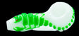 Pipa de pyrex 10cm blanca con verde fluorecente, brilla en la oscuridad y carga con la luz, fácil de limpiar.